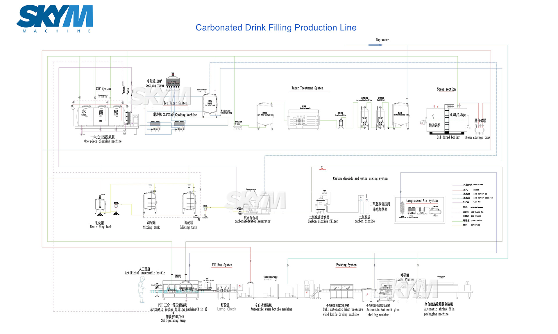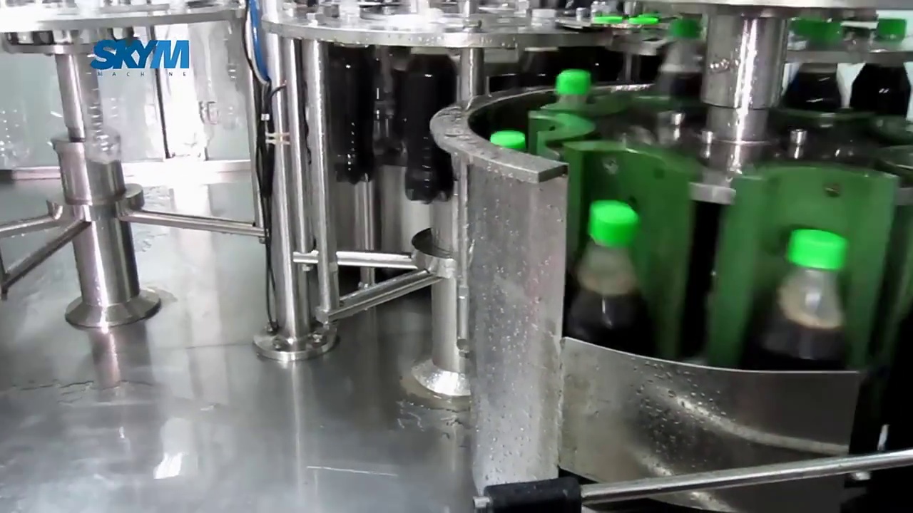 DCGF-series rinsing, filling, Capping 3-in-1 monobloc machine introduced by foreign advanced gas-filling technique is a high performance fully automatic liquid packaging equipment. Machine for carbonated beverage packaging machine has the following characteristics: filling tank, filling valves and other components in direct contact with the material are high-quality stainless steel or non-toxic materials, in line with food hygiene requirements: use of resistant seals hot rubber to meet the high-temperature sterilization process of user requirements: PCL programmable controller used to realize from the bottle into the machine to the packaging of finished using the automatic control of frequency control, easy to transfer the user to adjust prepared to meet the different process on the capacity requirements; using isobaric filling principle and popular spring-loaded valves, ensuring the quality of the beverage, using an advanced magnetic clutch adjustment screw cap torque device to ensure the quality of the blocks.
