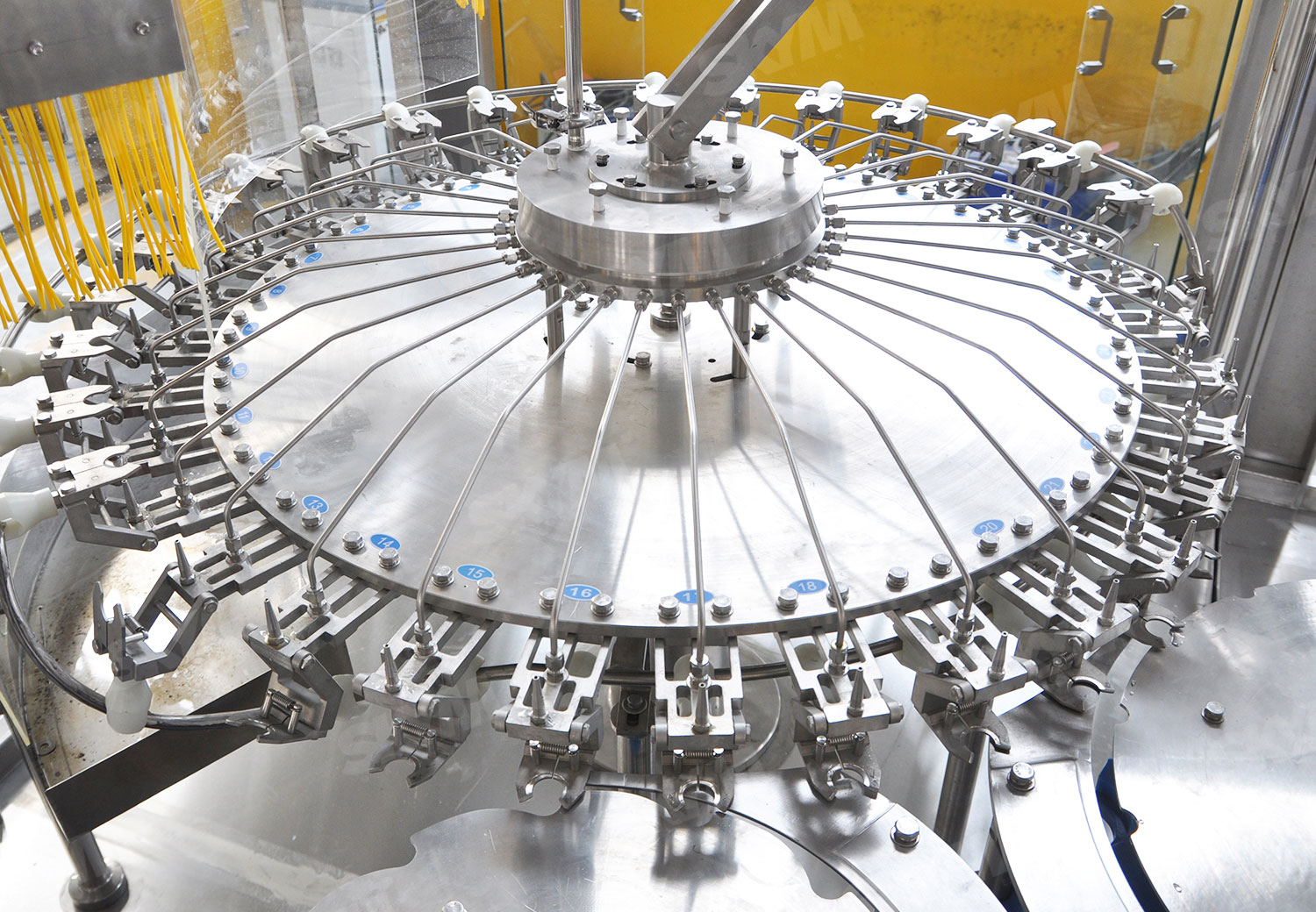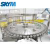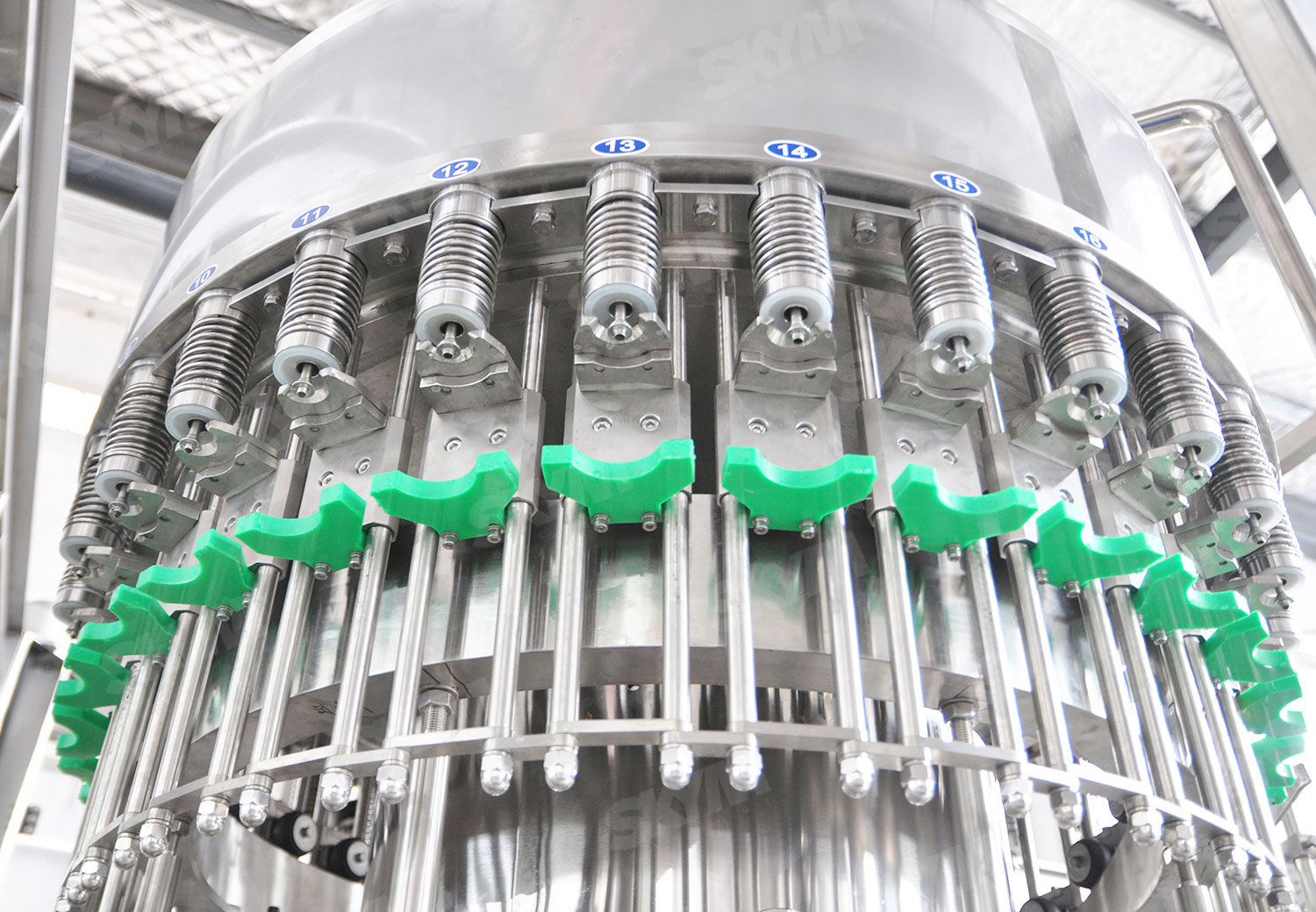 DCGF-series rinsing, filling, Capping 3-in-1 monobloc machine introduced by foreign advanced gas-filling technique is a high performance fully automatic liquid packaging equipment. Machine for carbonated beverage packaging machine has the following characteristics: filling tank, filling valves and other components in direct contact with the material are high-quality stainless steel or non-toxic materials, in line with food hygiene requirements: use of resistant seals hot rubber to meet the high-temperature sterilization process of user requirements: PCL programmable controller used to realize from the bottle into the machine to the packaging of finished using the automatic control of frequency control, easy to transfer the user to adjust prepared to meet the different process on the capacity requirements; using isobaric filling principle and popular spring-loaded valves, ensuring the quality of the beverage, using an advanced magnetic clutch adjustment screw cap torque device to ensure the quality of the blocks.